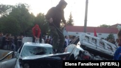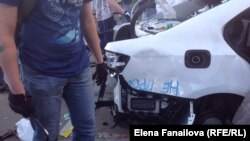Собравшихся около 300, ядро их составляют молодые люди в масках, именно они разбивают машины российского дипкорпуса.