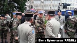На 9.30 намечен парад на главной площади города – Клебер. Ждут министра обороны. Ждут ветеранов. Для них подготовлены отдельные трибуны. А пока действующие военные общаются между собой.