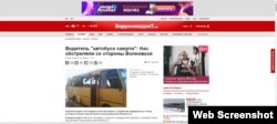 Далее в сюжете показывают скриншот с сайта "Корреспондент.net", на фоне которого драматично звучат вопросы журналиста и ответы водителя.