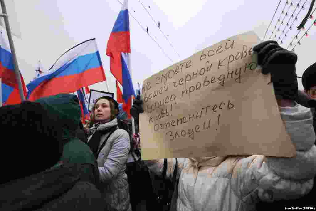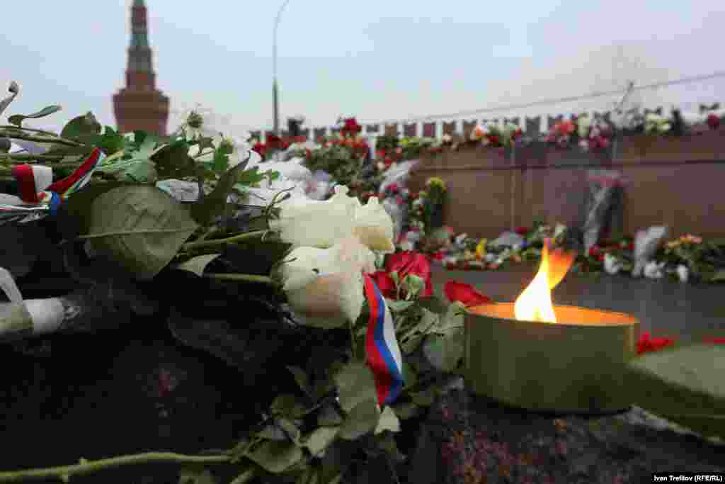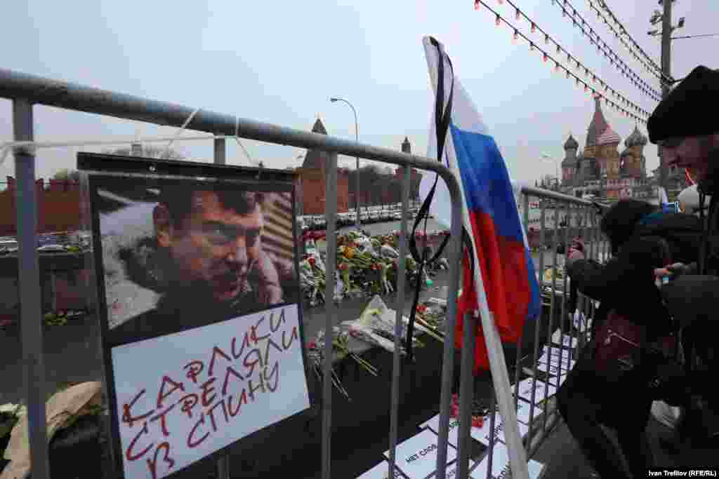 В Москве прошел многотысячный марш памяти убитого лидера демократической оппозиции Бориса Немцова. Участники шествия несли плакаты с его изображением. Немцов был застрелен в ночь на субботу в центре Москвы.