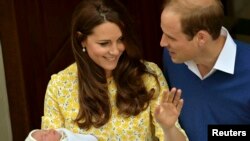 О рождении дочери принца Уильяма и Кейт Миддлтон, которым был пожалован титул герцога и герцогини Кембриджских, возвестил в субботу королевский герольд на ступенях больницы Сент-Мэри, где проходили роды: "Ее Королевское Высочество герцогиня Кембриджская, – громогласно зачитал герольд королевский указ, – благополучно разрешилась дочерью в 8.34 утра. Новорожденная принцесса весит 8 фунтов 3 унции (3,7 кг). Ее отец герцог Кембриджский присутствовал при родах. Ее Величество королева извещена о рождении правнучки и выразила радость по этому поводу".