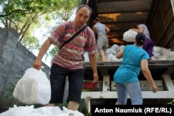 Переселенцам привозят гуманитарную помощь от благотворительного Фонда Рината Ахметова – например, в центр, открытый организацией "Країна вільних людей", ежемесячно приходят от двух до двух с половиной тысяч продуктовых наборов для взрослых и примерно 500 – для детей. Многие, в том числе переселенцы, считают всесильного в Донбассе бизнесмена одним из виновников вооруженного конфликта, но регулярно его помощью пользуются.