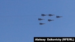 В параде приняли участие около 1600 солдат, сотни единиц боевой техники, в том числе самолеты и вертолеты.