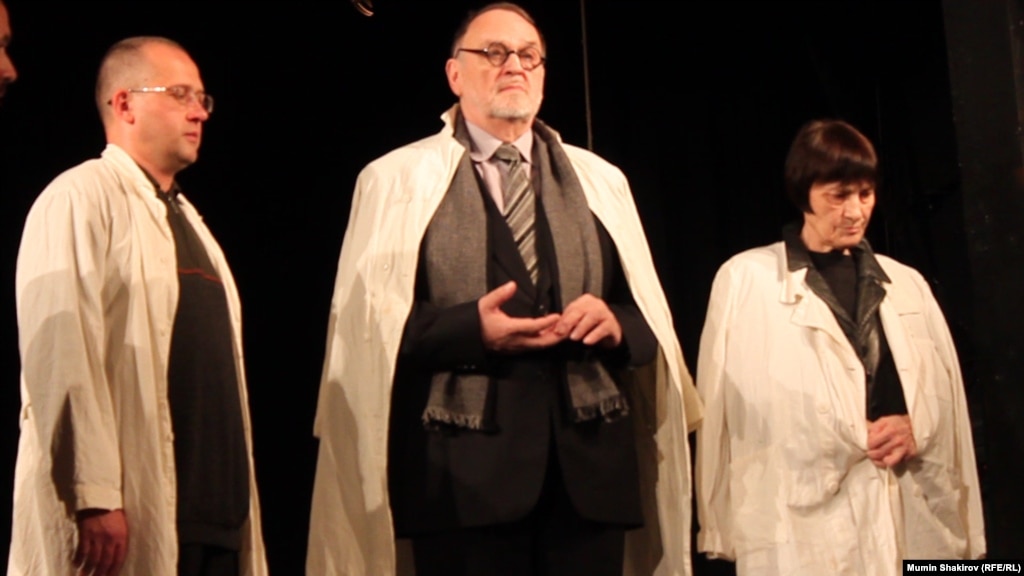 Елена Фанайлова: Я бы хотела посмотреть фрагмент спектакля, который является частью программы "Москва Шаламова". Это спектакль по пьесе Шаламова "Анна Ивановна", поставленный студией "Театр" Алексей Левицкого. И это один из центральных моментов пьесы, где доктор пытается отдать Анне Ивановне, буфетчице, которая должна выехать на Большую землю, свои рукописи. Из-за этого эпизода все закончится очень плохо, но сам эпизод, конечно, вполне себе трагикомический носит характер…