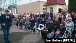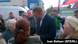 На крошечной площади перед маленьким городским рынком – привычный по московской кампании куб. Еще утро, до приезда Навального остается часа два, но встреча на рынке уже обсуждается: