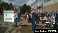 Выставленные волонтерами "Парнаса" стулья начинают заполняться. К концу встречи у Навального будет за сотню слушателей (для сравнения: на встречу с кандидатом в губернаторы от КПРФ пришло, по словам самих коммунистов, 37 человек). В основном это пожилые женщины.