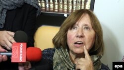Сергей Медведев: Нобель – изобретатель динамита. Каждый раз он закладывает бомбу под российское массовое сознание. Как только кто-то из русскоязычных получает Нобелевскую премию, тут же разворачиваются совершенно уничтожающие дискуссии, которые очень долго лихорадят российскую публику. То же самое произошло с Нобелевской премией Светланы Алексиевич, которая в общем даже белорусский писатель, но живет в русскоязычном пространстве. Прошло уже пять дней, как она получила Нобелевскую премию, а все не могут успокоиться. Об этих нобелевских страданиях и хотелось бы поговорить сегодня – даже не столько о самой прозе Алексиевич, сколько о том воздействии, которое Нобелевская премия оказала на российское массовое сознание. В какой нервный центр угодила Алексиевич, что всех так лихорадит? Или, вспомнив пьесу Эдварда Олби "Кто боится Вирджинии Вульф?", можно спросить: кто боится Светланы Алексиевич? Обсудим это с нашими сегодняшними гостями. Это Мариэтта Чудакова, писатель и литературовед, Александр Черкасов, председатель совета правозащитного общества "Мемориал", и Николай Кононов, главный редактор журнала "Секрет фирмы". Почему так "колбасит" людей от этой премии Алексиевич? Это что, политический заказ?