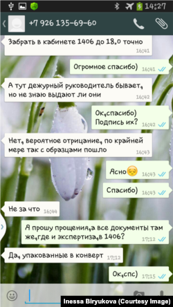"Нель. А по микрочастицам я хочу тип поручение муровским изъять одежду, потом рапорт, что они не изъяли, а потом, что мне с этими конвертами с микрочастицами делать? Непризнание вещдоками и хранить в камере хранения вщ?" – пишет Баряева 15 марта 2015 года (при этом поручение в деле датировано 3 апреля 2014-го).