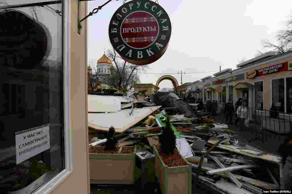 В ночь на вторник, 9 февраля, московские власти начали принудительный демонтаж торговых павильонов. Всего было снесено около 100 объектов у станций метро. Свои действия правительство столицы объяснило тем, что они являются "самовольными строениями", "угрожающими безопасности жителей города".