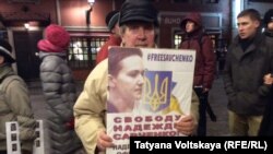 Некоторые из пришедших были с плакатами: «Свободу Надежде Савченко», «Савченко – в Страсбург, Путина – в Гаагу», «Надежда Савченко – офицер Украины, военнопленная, суд на ней – позор для России!», «Не дайте умереть Надежде!», «Путин – кат».