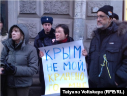 Участники акции вспоминали и вторую годовщину присоединения Крыма, которое они называют "аннексией".