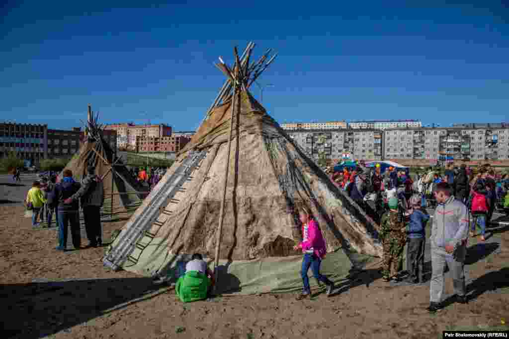 На время праздника в Дудинке построили традиционные чумы, жилища коренных народностей