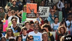 Участники "Маршей народа за климат" протестуют против отмены Трампом ограничений на выброс продуктов сгорания угля на ТЭЦ, разрешения проводить буровые работы на газовых и нефтяных месторождениях, расположенных в природоохранных зонах, а также против планов радикально сократить расходы федерального Агентства по защите окружающей среды.