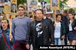 "Бессмертный полк" змеей полз по Екатерининской до здания Госсовета и дальше мимо областной прокуратуры. Шествие казалось бесконечным, через каждую минуту-две участники кричали: "Ура!" На табличках десятки тысяч фотографий. Взгляд выхватывает одну: "Генерал из крымских татар Бахши Михаил". Внизу приписка: "Репрессирован в 1937 году".
