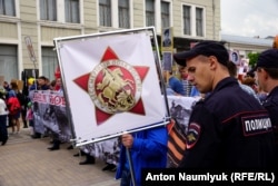 Первая официальная колонна шествия уже пошла по Кирова, завернула на Екатерининскую, когда часть участников только выстраивалась по проспекту. "Эй, товарищи, подвиньтесь, не видно же ничего!" – закричал мужчина с кавказским акцентом полицейским в штатском, которые стояли хмурые перед толпой, часто переговаривались по рации и закрывали обзор на колонну "Бессмертного полка" с детьми в первых рядах. "Это провокатор, – весело сообщила женщина подружкам. – Сейчас он докричится, увидишь, что с ним сделают", – добавила она, уже обращаясь к сыну.