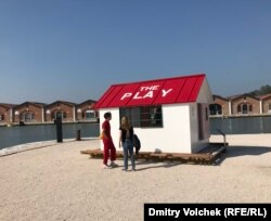 Еще один водный павильон – грузинский. Художник Важико Чачхиани нашел заброшенный деревянный домик в Грузии, разобрал его и заново собрал в венецианском Арсенале, добавив ирригационную систему так, что внутри дома постоянно идет дождь. Мрачная, меланхоличная работа, вдохновленная фильмами Тарковского.