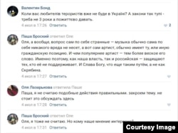 В официальной группе фестиваля "Вконтакте" люди неоднозначно расценили такой запрет. Есть те, кто считает, что не стоит смешивать искусство с политикой. Но есть и те, кто положительно отнесся к решению власти запрещать въезд артистам, "которые поддерживают террористов".