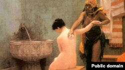 Баня досталась туркам в наследство от византийцев. В Стамбуле я вспомнил руины терм, увиденных в Карфагене. Но там меня больше поразили руины общественной уборной, и вот чем. Перед очками карфагеняне прорывали канавку, чтобы, справляя большую нужду, можно было одновременно, притом естественно и даже элегантно, справить и малую. Роль бань по достоинству оценил английский исследователь А.М.Пензер: "В этом институте, вошедшем в ежедневный обиход миллионов людей, отражается не только уровень архитектуры и искусства, не только нравы, обычаи, причуды и фантазии простых людей, но и взлет и падение наций, рост и распад империй". Другой исследователь и путешественник по имени Тавернье, прошедший все круги рая в дворцовой бане в 1666 году, рассказал мне в Стамбуле об одной причуде султана. По его словам, в дворцовой бане было особое помещение, где султан в полном одиночестве брил пах. Я спросил Тавернье, почему султан предпочитал бритву мышьяковой мази, хотя известно, что последняя радикально снимает волосяной покров вплоть до мешочка. Ученый ответил, что султан был настолько отважным человеком, что не боялся бритвы. Мазью же пользовались, главным образом, женщины. Причем натирали ею даже ушные раковины и полость носа. Любопытно, что у девственниц был в бане особый статус. Им, в отличие от женщин, позволялось обнажаться догола, если не считать покровом длинные кудри с вплетенными в них лентами и украшениями. Накануне бракосочетания невесты по традиции устраивали в бане девичник и в присутствии подруг впервые в жизни обривали тело.