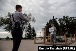 Бывший военный летчик Сергей Шевчук живет в Ярославле. Он приехал в Волгоград к родственникам в отпуск и "как православный человек" решил поддержать выступление против фильма "Матильда".