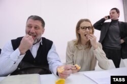 Владимир Путин, Ксения Собчак и ее мать Людмила Нарусова на могиле Анатолия Собчака в Санкт-Петербурге, 29 ноября 2003 года Фото:Kremlin (AP)