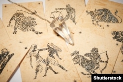 Марина Ефимова: В нашем городке Энглвуде, суперприличном, супербуржуазном, на главной улице я зашла в заведение под диккенсовским названием "Астрологическая лавка". Открыто 12 часов в сутки с 9 утра до 9 вечера. Похоже на приёмную психотерапевта - стены увешаны знаками зодиака. Но тут же продаются полудрагоценные камни и кристаллы, приносящие удачу, гадальные астрологические карты, любовные масла. Хозяйка Лиза - потомственный астролог, ее бабушка - из Румынии.