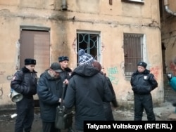 Когда активисты направилась во дворы, к ним подошли трое полицейских, уговаривая их покинуть заброшенный квартал – якобы для безопасности людей. На самом деле собравшиеся уверены, что полицейские пришли, чтобы не допустить несанкционированного митинга, у одного из них даже был мегафон, с помощью которого обычно гражданам предлагают разойтись, если их акция считается незаконной.