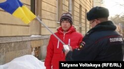 Около 10 гражданских активистов пришли вечером 21 февраля к Генеральному консульству Украины в Петербурге, чтобы поздравить украинцев с 4 годовщиной победы народной демократической революции.