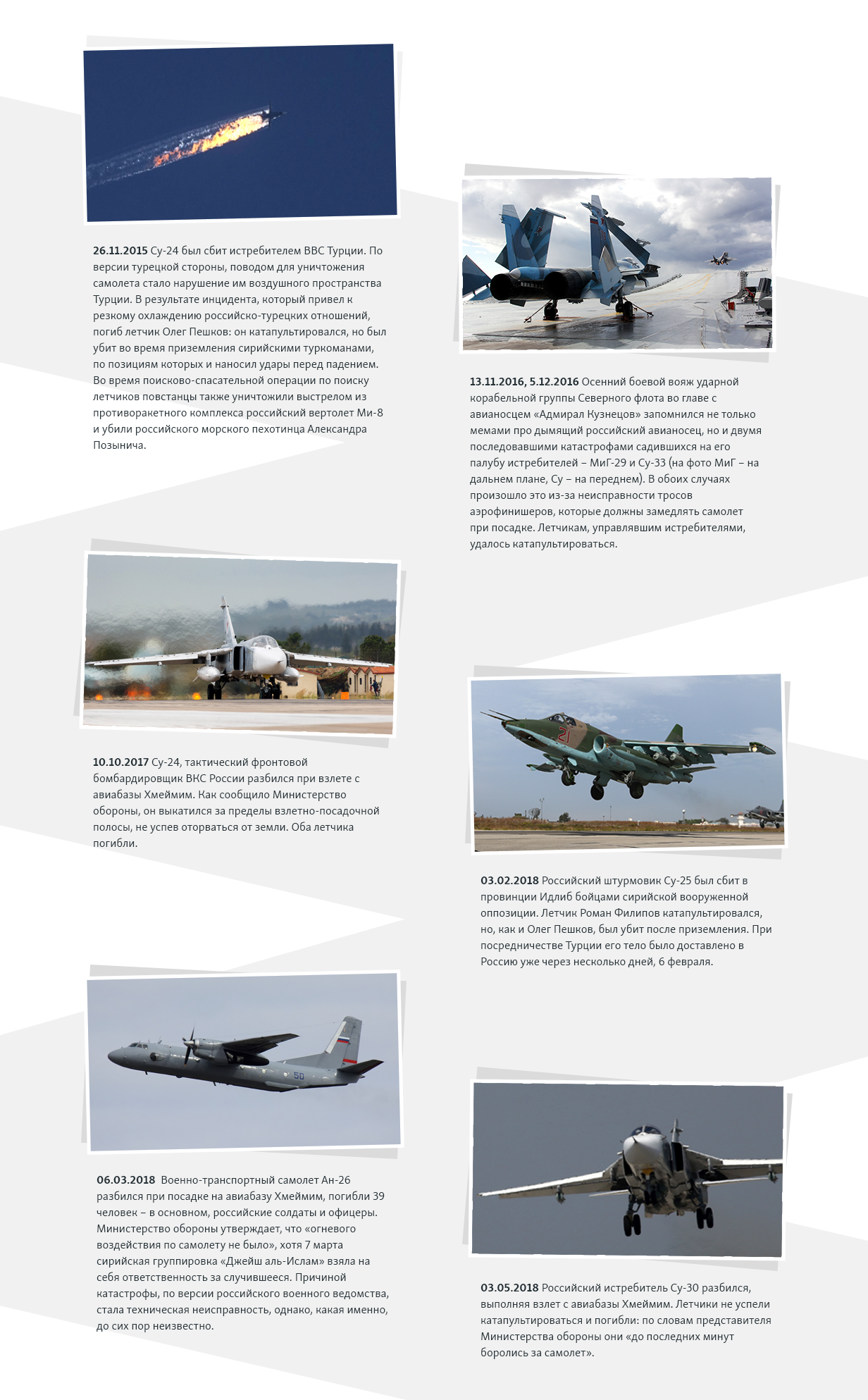В Сирии в ночь на 18 сентября разбился российский разведывательный самолет Ил-20. Погибли 15 человек. Российское министерство обороны винит в случившемся Израиль, который в это же время наносил удары по иранским объектам в сирийской провинции Латакия. Ил-20 стал восьмым российским самолетом, разбившимся в Сирии за время участия России в войне на территории этой страны. Всего этих инцидентах погибли уже 60 человек, - не считая 11-ти, погибших при крушениях или уничтожении на земле вертолетов.