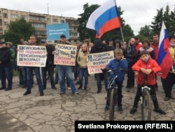 Депутат Лев Шлосберг выступает на акции против повышения пенсионного возраста