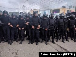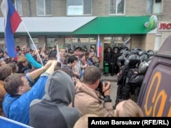 В Новосибирске около Центрального РОВД путь колонне протестующих преградили бойцы ОМОНа, сообщают "Сибирь.Реалии".