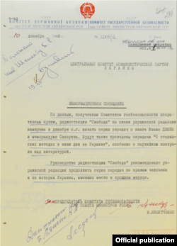 В мае 1987 года появляется докладная записка КГБ "об изменениях в тактике подрывной деятельности "украинской редакции" РС/РСЕ": "Особое место в программах радиопередач рекомендуется уделять темам о якобы имеющих место "нарушениях прав человека" на Украине и насильственной "русификации", клеветническим измышлениям по поводу так называемого "искусственного голода", "репрессий 1937 года"…