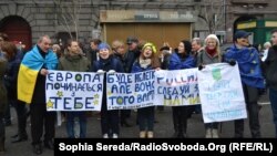 Ровно. На плакате надпись: "Таможенный союз, давай, до свидания". (Считалось, что после отказа от евроинтеграции правительство Украины – под давлением России – будет стремиться к вхождению в Таможенный союз ЕврАзЭС.)