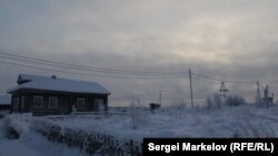 В день нашего приезда в поселке – минус тридцать градусов. Жители Панозера поселили нас в еще непротопленную избу. На лавке стоят ведра с водой, сверху – корка льда. Сидим в одежде. Пока топим печку, местная жительница Раиса Гаврилова греет руки. На ней оранжевый платок, красная стеганая куртка и бурки.