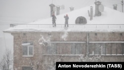 Жильцы сообщили Радио Свобода, что неоднократно жаловались в администрацию на толстый слой снега на крыше и обещали оплатить очистку кровли, но рабочие на объект так и не пришли.