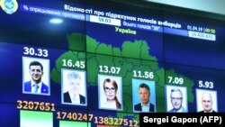 Подсчёт голосов пока продолжается, по итогам подсчёта более 75 процентов во второй тур выходят шоумен Владимир Зеленский (30,4 процента голосов) и действующий президент Пётр Порошенко (16,1 процент), Тимошенко на третьем месте (13,2 процента).