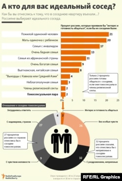 Больше половины россиян (56 процентов) заявили о "скорее отрицательном" отношении к геям и лесбиянкам. Три процента сообщили о "скорее положительном" отношении и ещё 39 процентов – о нейтральном или безразличном. Об этом свидетельствуют данные опроса "Левада-центра".