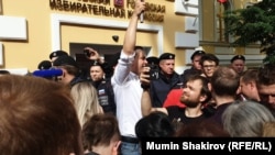 Сотни людей сначала собрались на Пушкинской площади, потом отправились к мэрии, а затем к Мосгоризбиркому.