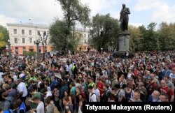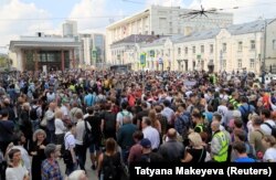 Часть протестующих идет в сторону Библиотеки имени Ленина, сообщает "Медиазона". Много людей осталось на Пушкинской площади, оцепленной силовиками.