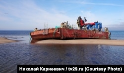 Утром 2 сентября информационное агентство "Беломорканал" опубликовало видео, снятое 31 августа рядом с двумя понтонами, оказавшимися у берега Двинского залива рядом с селом Нёнокса после взрыва на морском полигоне ВМФ. На видео показан замер радиационного фона, и его уровень рядом с понтонами существенно превышает допустимый. Сегодня Радио Свобода впервые публикует фотографии понтонов в высоком разрешении: на одном из них мы обнаружили подъемный кран, дизель-генератор, а главное – небольшой желтый контейнер для транспортировки опасных радиоактивных отходов.