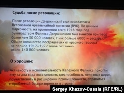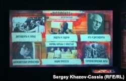 Репрессии достаточно подробно представлены на выставке, отдельный стенд посвящён культу личности Сталина, но ни репрессии, ни культ личности не выведены на первый план. "Выставки содержат очень много информации, это тысячи страниц текста, который весьма умно скомпонован. Если ты хочешь найти что-то про репрессии, про опричнину, про коллективизацию, ты это найдёшь. И если ты придёшь к ним с претензией, то они скажут: "Вот же, всё есть". Но если ты придёшь просто как посетитель, то тебе такие сюжеты, скорее всего, в глаза не бросятся, – говорит Клименко. – Там панно на стенах, на них картинки и слоганы. Воспринимаются слоганы в первую очередь. Ты заходишь в зал Александра Невского, и там огромное панно с его изображением и написано: "Крепить оборону на западе, друзей искать на востоке". Ты можешь ничего больше не читать про Невского, но слоган ты увидишь".