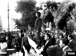 Восьмой съезд Российской коммунистической партии (большевиков) прошел в марте 1919 года. Иосиф Сталин, Владимир Ленин и Михаил Калинин (слева направо) на одной фотографии.