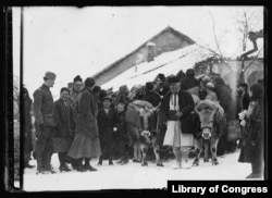 А этот снимок сделан фотографом американского Красного Креста, как он написал, в "Малороссии". В записке отмечено также, что украинские крестьяне долгие годы сначала Первой мировой, а потом Гражданской войны не могли купить ни еды, ни одежды и были вынуждены перейти к производству всего самостоятельно. Фотограф отмечает их трудолюбие и находчивость. Фотография ноября 1919 года.