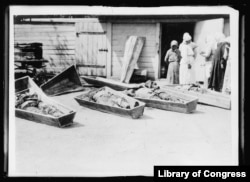 На фотографии украинские крестьяне на опознании своих близких, убитых большевиками. Ноябрь 1919 года. Летом Добровольческая армия отбила Полтаву у красных. Но пребывание белых в городе продлилось недолго – четыре месяца.