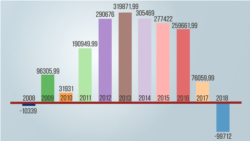 Впрочем, если посмотреть на еще один график, на котором отражается ежегодное изменение численности российского населения с учетом миграции, несложно заметить, что антирекорд 2008 года побит, причем еще в прошлом году. Более того, все годы после кризисного 2008-го, за исключением прошлого и нынешнего, российское население росло – благодаря мигрантам.
