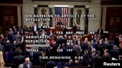 В результате за первую статью импичмента было подано 230 голосов, за вторую 229 при необходимом большинстве в 218 голосов.