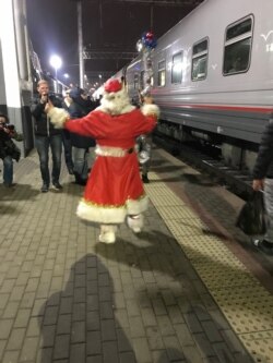 Оказывается, ростовский Дед Мороз теперь тоже пассажир "Таврии" – и, кажется, безбилетный, но никто его не гонит. "Дед" снял бороду и парик и оказался веселым сухим мужиком: он распевает бардовские песни, и в его импровизированном Грушинском фестивале участвует половина вагона. В последнем кубрике сидит дама в огромной, занимающей всю полку пышной белой юбке. "Вас можно сфотографировать?" – "Конечно, только дайте я табличку возьму". Она разворачивает буклет – "В добрый путь" написано на нем. "Вы – невеста?" – "Да нет, просто Новый год!"