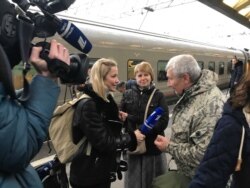 На перроне Московского вокзала в Петербурге нет ни музыки, ни воздушных шариков: между неприметными людьми в штатском снуют корреспонденты с камерами в поисках "настоящих" пассажиров. Один такой – пожилой мужчина в камуфляже с внушительным рюкзаком – пользуется особой популярностью, видимо, именно так должен выглядеть образцовый пассажир "Таврии".