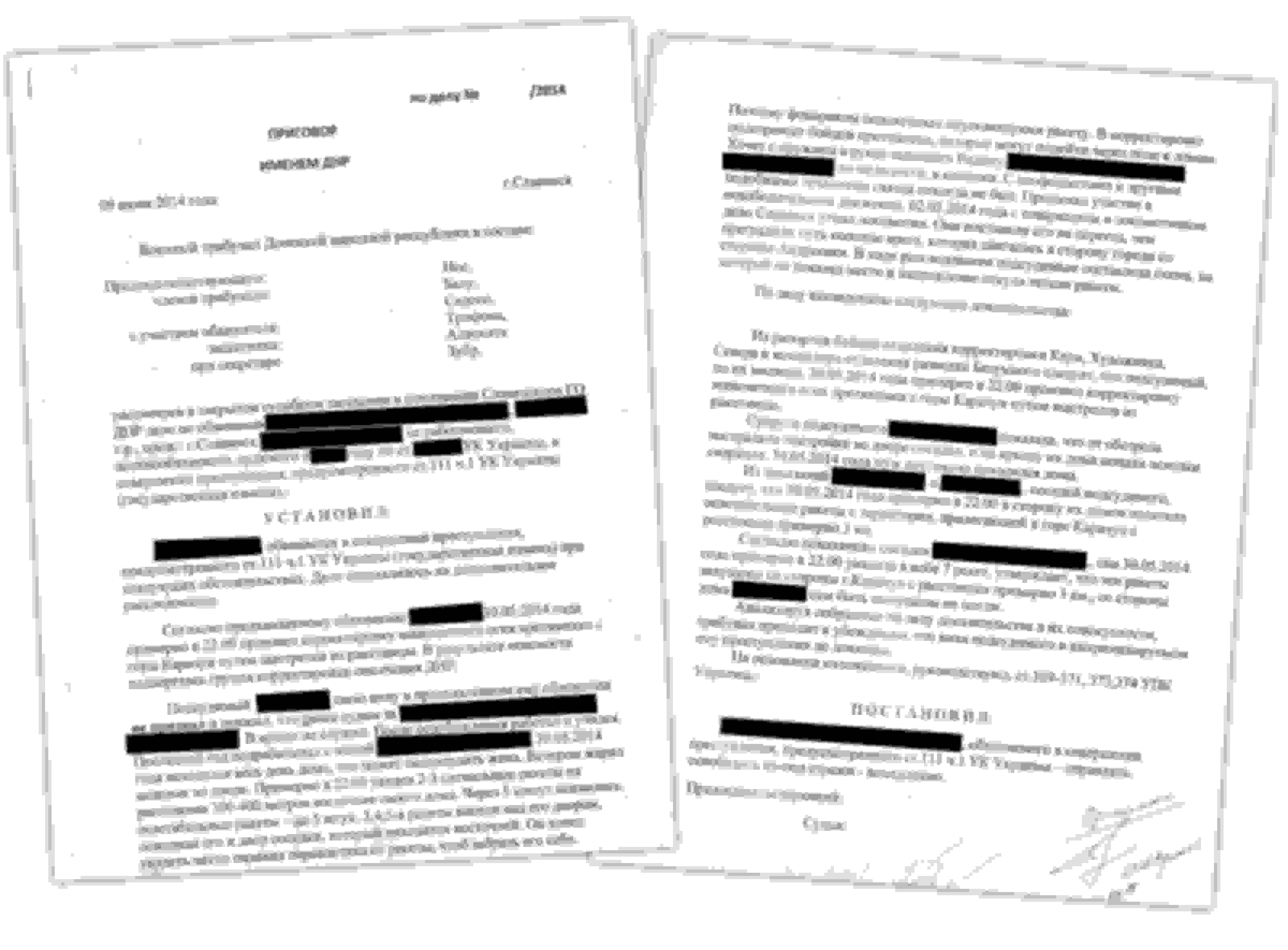 - 8 Хотя поддерживаемые Россией сепаратисты объявили независимость от Киева, "трибунал" ссылается на украинский уголовный кодекс в резолютивной части постановления.