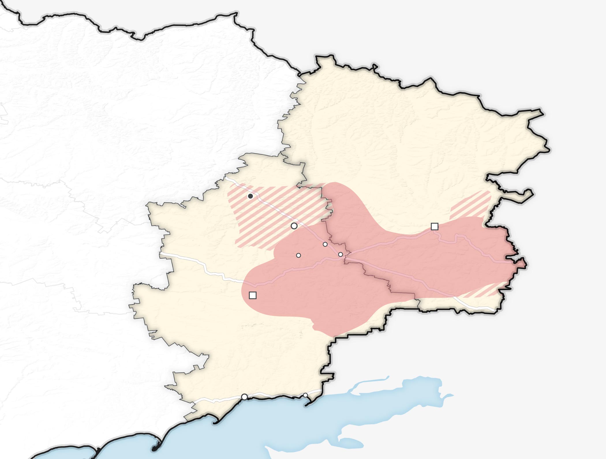 - Территория, контролируемая поддерживаемыми Россией сепаратистами до 5 июля 2014 года.