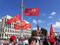 На площадь Победы в Витебске пришли художники, медики, железнодорожники. Железнодорожники скандировали: "Забастовка!"